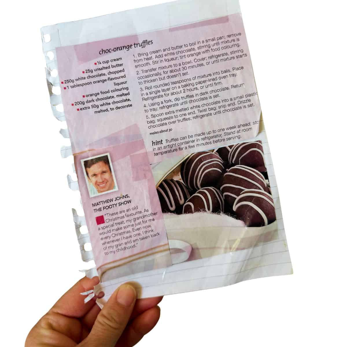 I've adapted this recipe from a truffles recipe I found on the back of a Chester Slice recipe that my Aunty Judy had given me. Clipped from an early 2000's magazine, it was contributed by former footy player Matthew Johns. He attributes the recipe to his grandmother. Coincidentally, he was raised in the Hunter Valley just like myself, Nana Ling and most of my extended family.