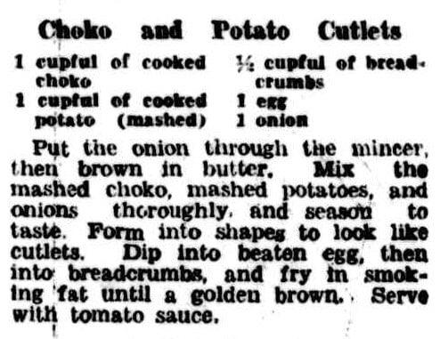 Could this be the ultimate vegetarian recipe? Mock cutlets made with potatoes and chokos were on the menu back in June 1935 when this recipe was published in The Queenslander.