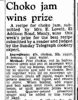 In May 1942, this Choko Jam Recipe won the Daily Telegraph's prize: a "War Savings Certificate" for one pound.