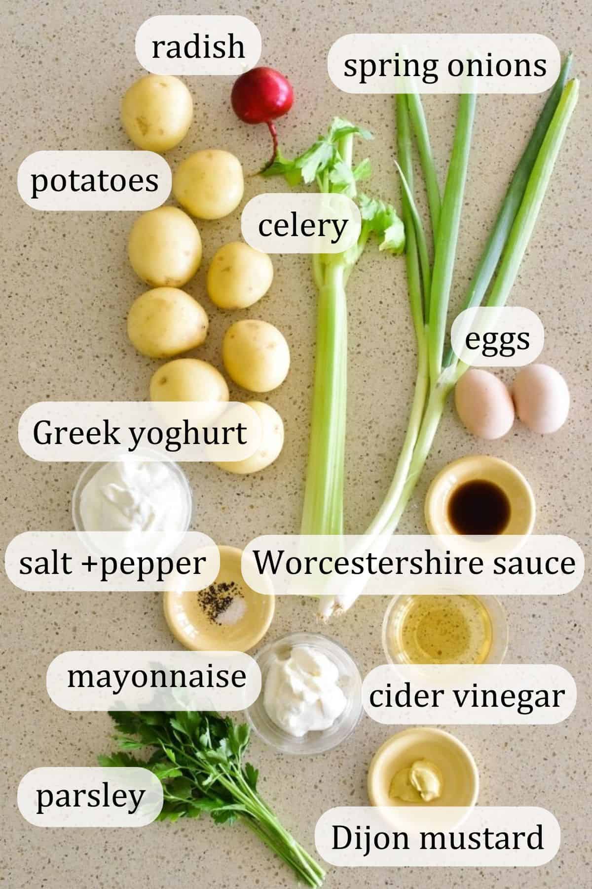 The old newspaper recipes I relied on when creating this recipe often included celery or radish. I've included both these as the combination of crunch with the creaminess of the potatoes adds that something extra.