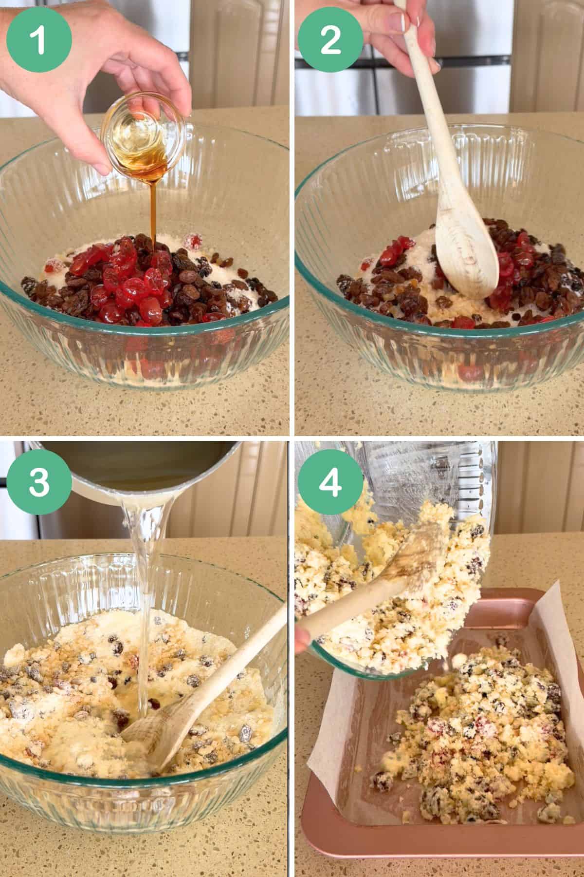 This recipes uses mixed fruit and glace cherries, as per tradition. However, you could substitute one or both of these ingredients with: